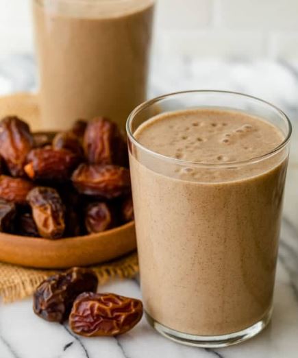 - في الخلاط نضع كوب ونصف حليب والتمر ونشغل الخلاط حتى تمتزج المكونات معاً .