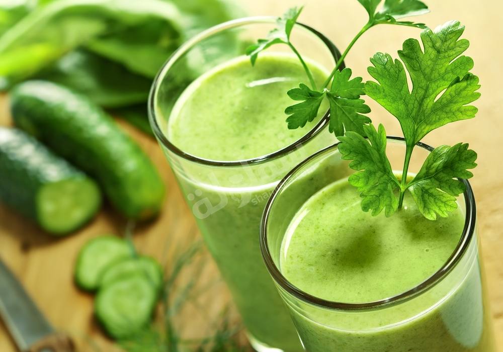 - يوصع الخيار، والبقدونس، والماء في الخلاط، ويضرب جيداً، حتى نحصل على خليط ناعم القوام.