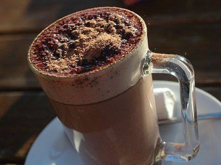 4. توضع الشيكولاتة الساخنة في أكواب التقديم و تزين بالشيكولاتة البودرة ثم تقدم .