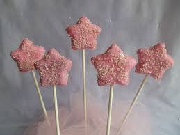 - تغطس نهاية عصا مصاصة في الشوكولاتة ثم تلصق في الجزء السفلي من نجمة ونعيدها غلى الصينة وكرر مع باقي نجوم الكيك .