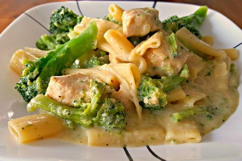 مقادير عمل معكرونة بالدجاج والبروكلي