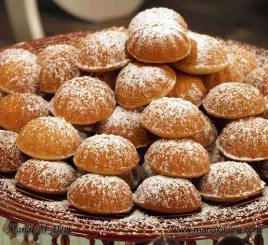 - من خلال مصفاة ناعمة الثقوب أنثري السكر الناعم على المعمول وهو ما زال دافئا.