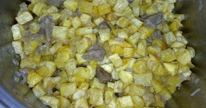 - تضاف البطاطا إلى اللحم المفروم و تقلب لمدة ٥ دقائق .