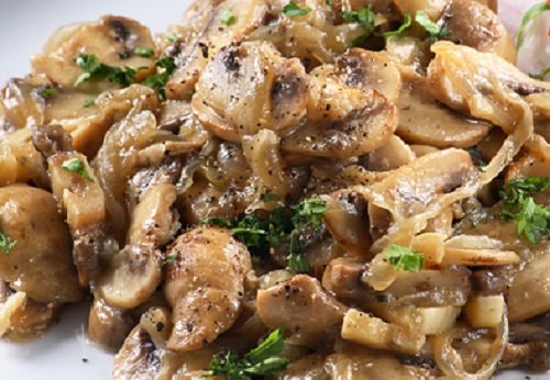 يقشر البصل ويقطع حلقات ويوضع بوعاء به ملعقة سمن تحت درجة حرارة معتدلة ويذبل ثم يضاف إلى الفطر .