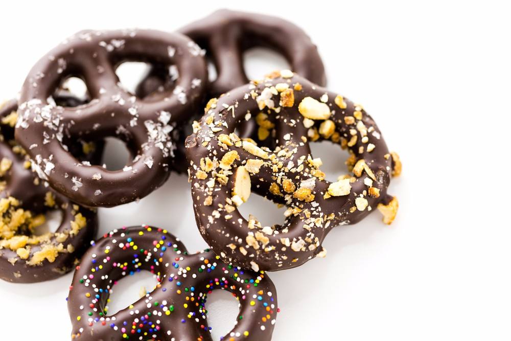 - ضعي رقائق الشيكولاتة فوق مقرمشات البريتزل ثم ضعيها في الفرن لمدة 1 دقيقة ثم قلبيها.