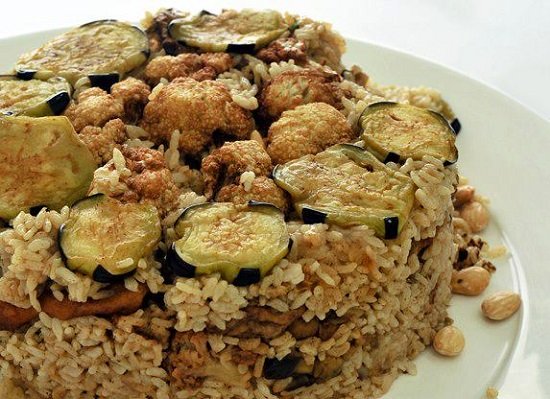 وتترك على نار هادئة لمدة ٢٥ إلى ثلاثين دقيقة حتى يستوي الأرز و تقلب في صحن التقديم وتزين بالمكسرات(اللوز و الصنوبر المقلي).