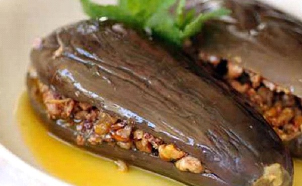 - نزيل رأس الباذنجان ونغسله جيداً ثم نضعه في قدر عميق من الماء ونغطيه ونضع فوق الغطاء شيء ثقيل ونترك الماء على نار عالية حتى تغلي وبعدها نترك الباذنجان لحوالي ساعة تقريباً حتى ينضج .
