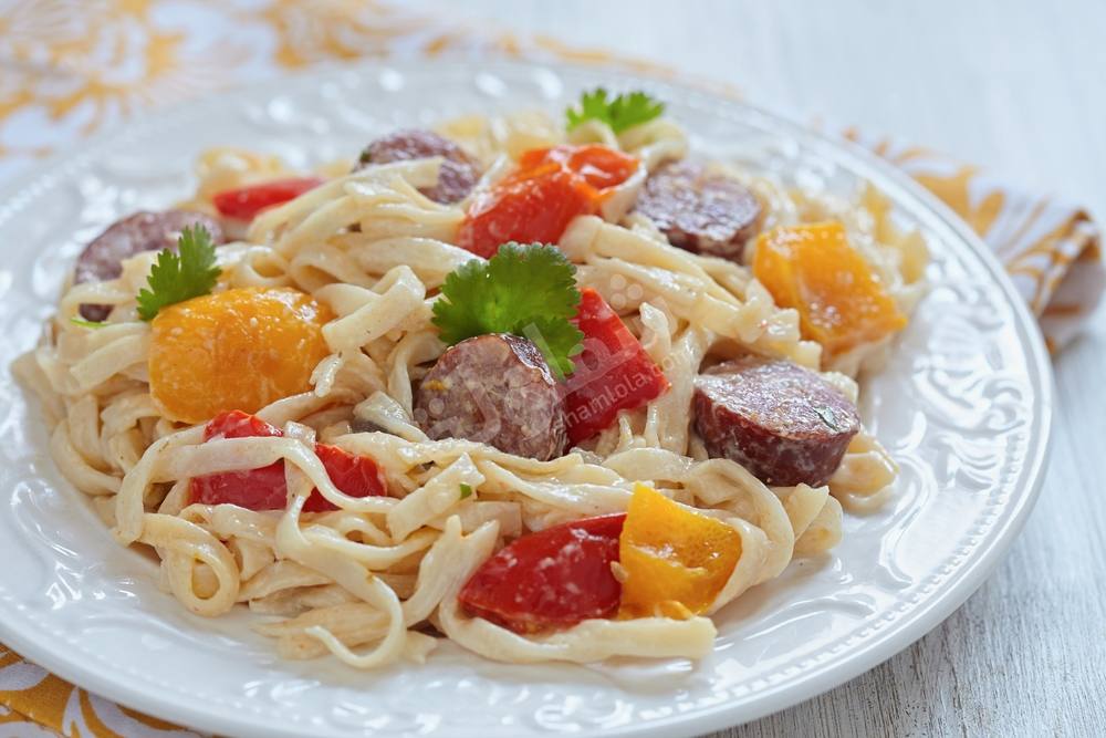 قدمى لعائلتك أطيب الأطباق الجانبية إليكى سيدتى طبق مكرونة ألفريدو بالسوسيس ذات المذاق المميز الرائع و إليكى