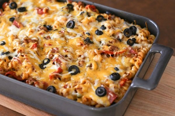 طريقة عمل مكرونة البيتزا باللحم المفروم