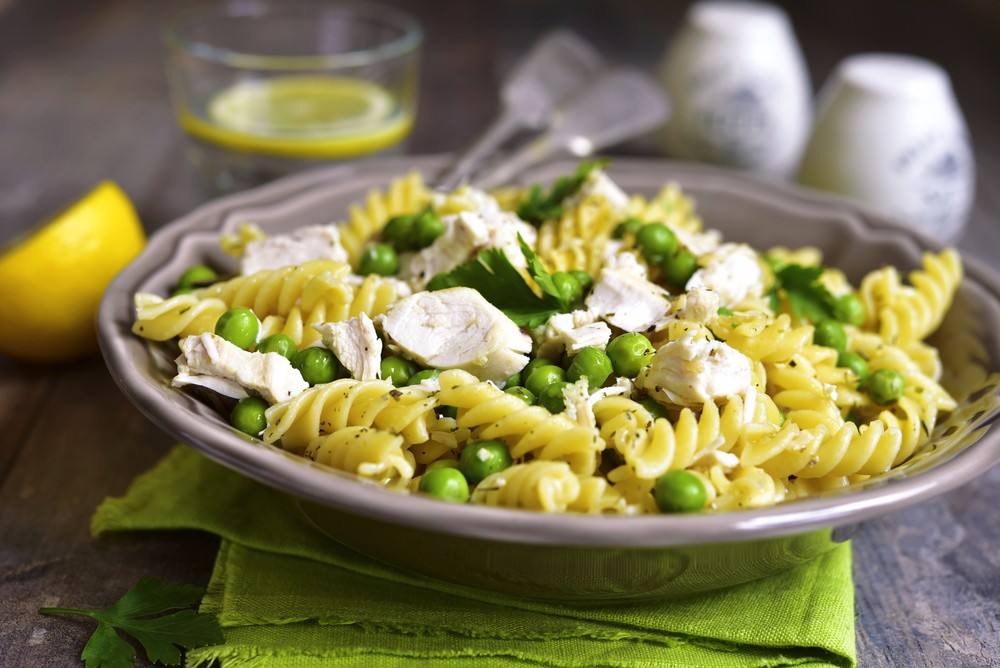- يضاف إليها قطع الدجاج والبسلة، وتقلب جيدا.