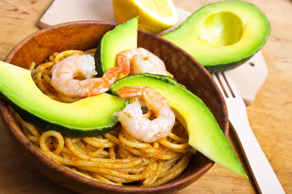 اقتراحات مكرونة بالجمبري والأفوكادو :