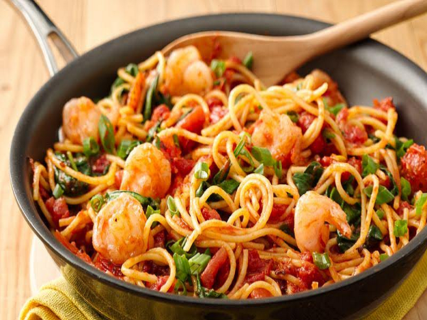 - ونضيف الروبيان مع الملح والفلفل الأسود إلى المقلاة ونطهيها حتى يتحول لونه إلى اللون الوردي، مع التقليب من وقت لآخر، من دقيقتين إلى ثلاث دقائق، ثم نزيل الروبيان من المقلاة ونضعه جانبًا فى المقلاة ذاتها بعد إزالة الروبيان، ونضيف ملعقتين كبيرتين من الزبدة مع ملعقتين كبيرتين من زيت الزيتون على نار هادئة، ونضيف الباستا المسلوقة، والروبيان ، والبقدونس مع التقليب جيدا، ثم تقدم ساخنة.