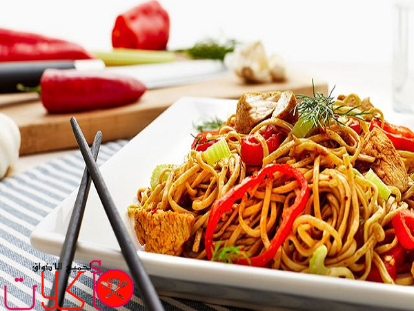 مكرونة بالصويا صوص و هي المكرونة على الطريقة الصينية و تعتبر من أفضل الوصفات التي يمكن الاعتماد عليها في فترة الدايت حيث تعد وجبة متكاملة لاحتوائها على أنواع متعددة من الخضراوات ذات القيم الغذائية العالية، و عدم احتوائها على أي نسب من الدهون .