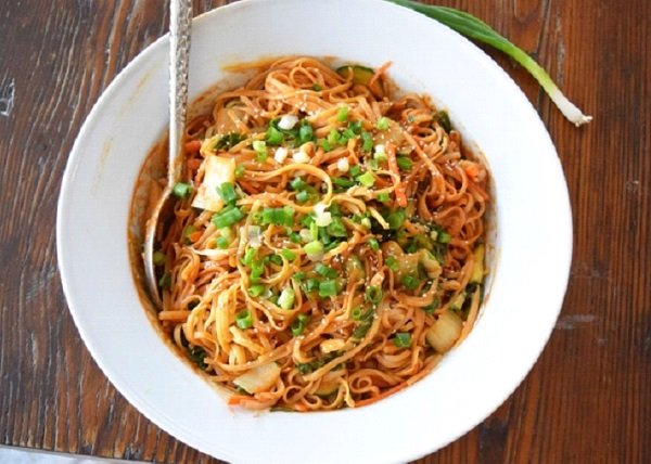 مكرونة بالفول السوداني ، هذه المكرونة التايلندية بزبدة الفول السوداني سهلة وسريعة التحضير حيث تكون جاهزة خلال 25 دقيقة فقط وتتميز بصلصة شهية من الخل والزنجبيل والكاتشب وصلصة الصويا وزبدة الفول السوداني .