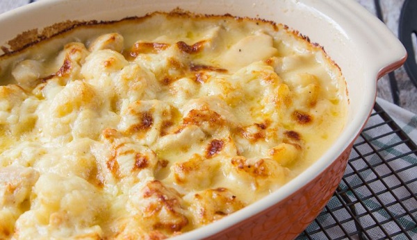- – لعمل الصوص، قم بإذابة الزبدة في قدر كبير، ثم أضيف الدقيق واخلطهما معًا جيدًا. يُطهى المزيج لمدة دقيقة واحدة ثم يضاف الحليب الساخن تدريجيًا ويخفق على نار عالية حتى يصبح الصوص ناعم وكثيف.