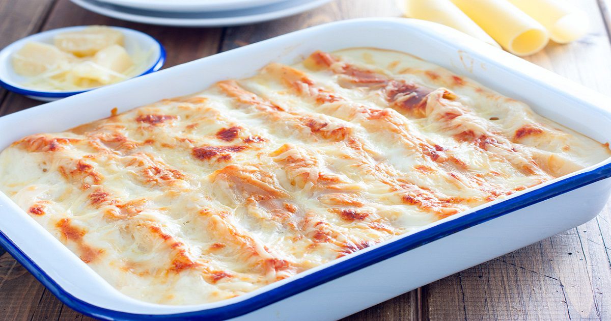 8- اسكبي المعكرونة مع صلصة البشاميل في صينية فرن ثم وزعي شرائح جبن القشقوان على وجهها. 9- ادخلي الصينية إلى الفرن لحوالى الـ 20 دقيقة.