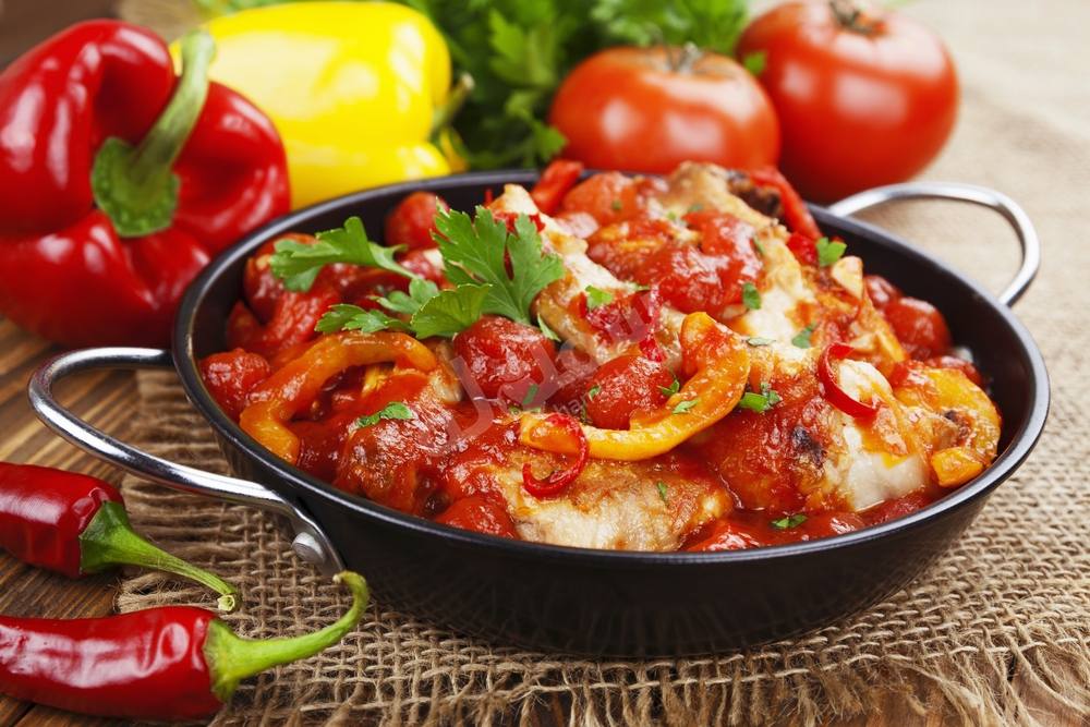 قومي بتقطيع البصل الى شرائح و الفلفل الى قطع صغيرة والجزر الى شرائح رفيعة و ضعيهم في اناء الحجم مع قليل من الزيت ثم اضيفي عليهم الدجاج المقليعلى النار.