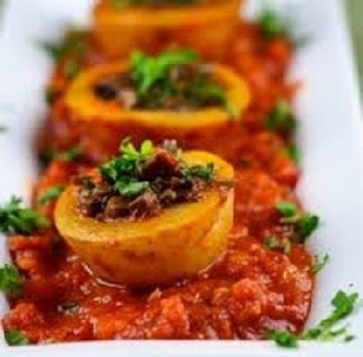 منزلة البطاطا من احدى افخر المأكولات السورية في مدينة حماه السورية بالإضافة لمنظرها الشهي المغطى بسائل الطماطم اللذيذ اللزج القوام فهي مادة غنية جداً بالنشويات والبروتينات لأنها تعتمد بالدرجة الأولى على حبات البطاطا الصغيرة المحشوة باللحم والتي يمكن ان تقف ربة المنزل حائرة ما الفكرة الجديدة اللذيذة التي قد تعجب اطفالها بهذه الحبات …!!!