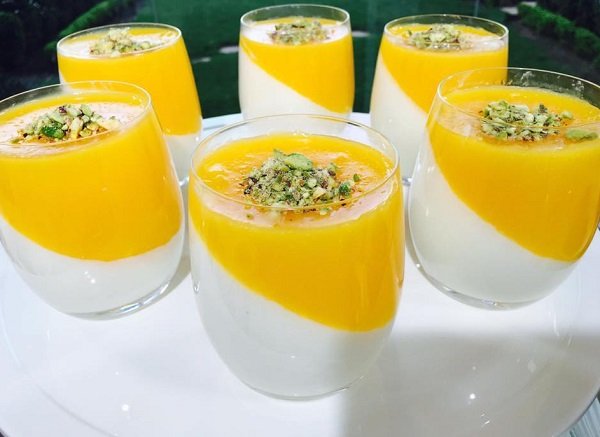 - نصب الخليط في زبادي التقديم وندخلهم إلى الثلاجة لمدة ساعتين على الأقل .