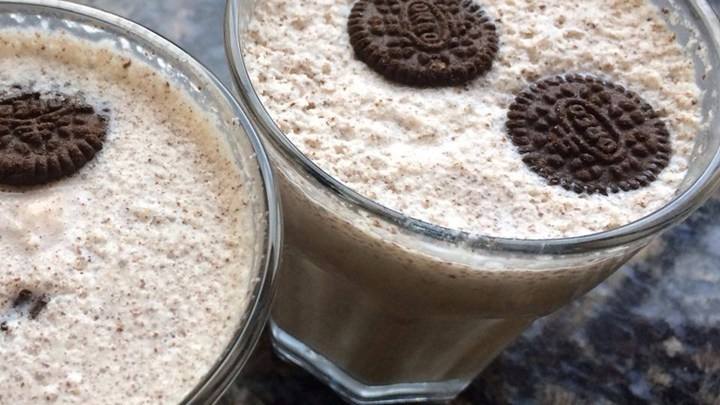 - ضعي قطع الأوريو في الخلاط و اخلطيها جيدا مع اللبن و الآيس كريم.