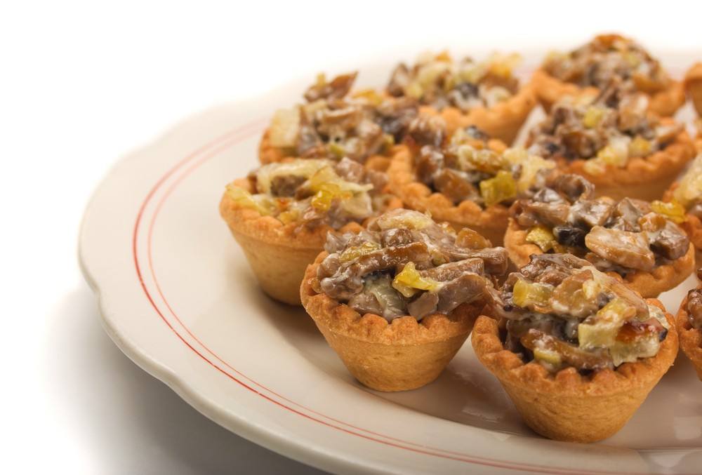 - ، يوزع خليط المشروم في القوالب، ويدخل الفرن لمدة 15 دقيقة وحتى ينضج التارت ويتماسك الحشو.