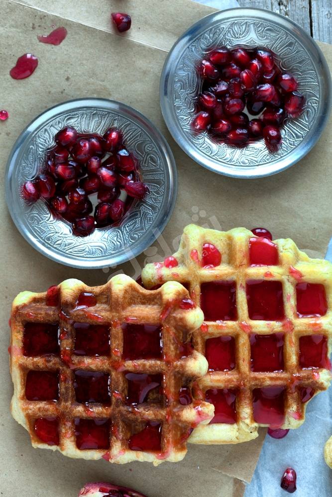إليكى سيدتى  وجبة خفيفة و مميزة لكى و لأولادك  وافل الشيكولاتة بالكريمة والرمان  ذو المذاق اللذيذ الرائع