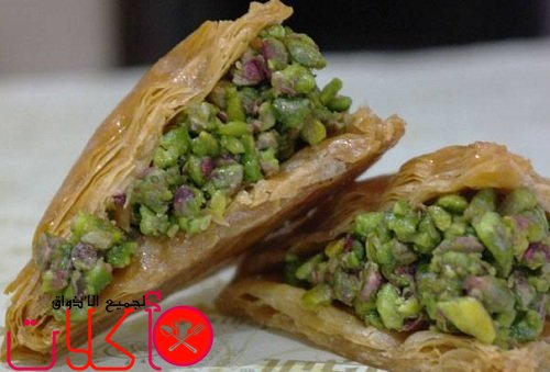 9- نخرج الوربات بالفستق ونصفها في طبق ونصب القطر فوقهم وتصبح جاهزة للتقديم