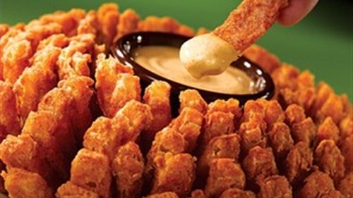 نمسك البصلة من ناحية الجذور ثم نغطسها في خليط البيض ونهزها كي تتغطي من كل أجزائها ثم ننقلها لخليط الطحين ثم نعييدها لخليط البيض وثم الطحين حتى تتغطى بطبقة سميكة