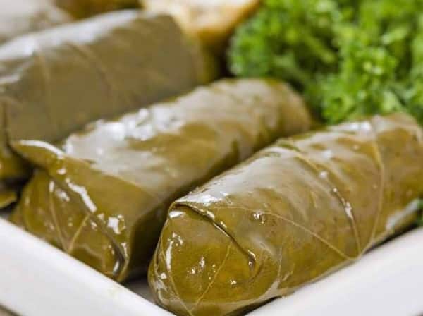 - يحشى ورق العنب بالأرز المخلوط بالخضروات ويلف على شكل رول مغلق ويصف في القدر و نضيف قرنا الفلفل الحار .