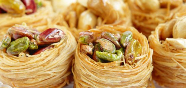 - وضع العش في الصينية وإكمال تشكيل بقية الكنافة إلى أعشاش صغيرة.
