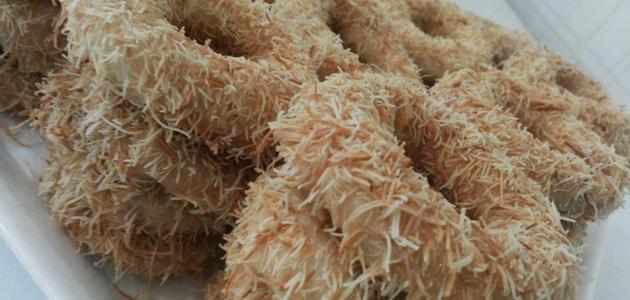 - وضع الكنافة في طبق كبيرٍ، وسكب السمنة الذائبة فوقها، وتقليبها بأطراف الأصابع، حتّى تتشرّبَ السمنة جيّداً.