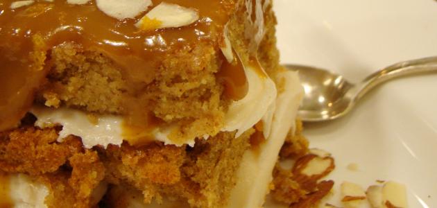 - أخرج الكيك من الصينية وباستخدام سكين طويل اقطع الكيك بشكل عرضي إلى طبقتين، ثم أضف طبقة سميكة من الكراميل بين فوق الطبقة السفلى وبعدها أعد الطبقة العليا فوقها، فيصبح بذلك الكيك محشواً بطبقة من الكراميل، ثم أضف طبقة من الكراميل على قالب الكيك كله حتى يغطيه الكراميل بالكامل واتركه لعدة دقائق حتى يتماسك ثم يمكنك تقديمه مع كوب من القهوة لأنه حلو المذاق.