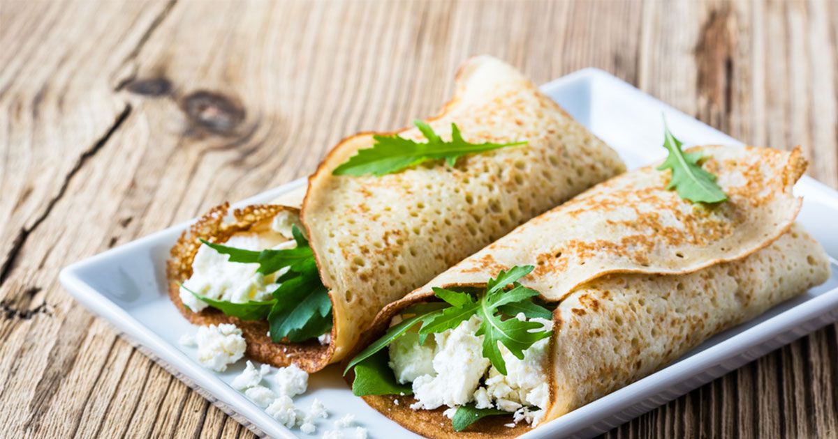 1- في وعاء الخلاط الكهربائي ضعي البيض، الدقيق، الماء ثم نكهي بالملح والفلفل الأسود. 2- أخلطي المكونات جيداً حتى تتجانس. 3- حمي مقلاة واسعة على نار متوسطة، ضعي مقدار مغرفة من مزيج الكريب وافرديها في قعر المقلاة. 4- اطهي الكريب حتى تنضج من الجهتين. كرّري العملية حتى انتهاء الكمية. 5- ضعي على الكريب مقدار من جبن الفيتا والجرجير ثم وزعي على وجهها القليل من زيت الزيتون. لفي الكريب على شكل رول. 6- كرري الخطوة السابقة حتى انتهاء الكمية. 7- قدمي الكريب المالح مباشرةً على سفرتك.