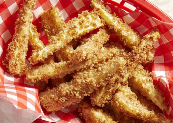 - نبدأ بتقشير البطاطا ثم نغسلها ونقطعها إلى أصابع .