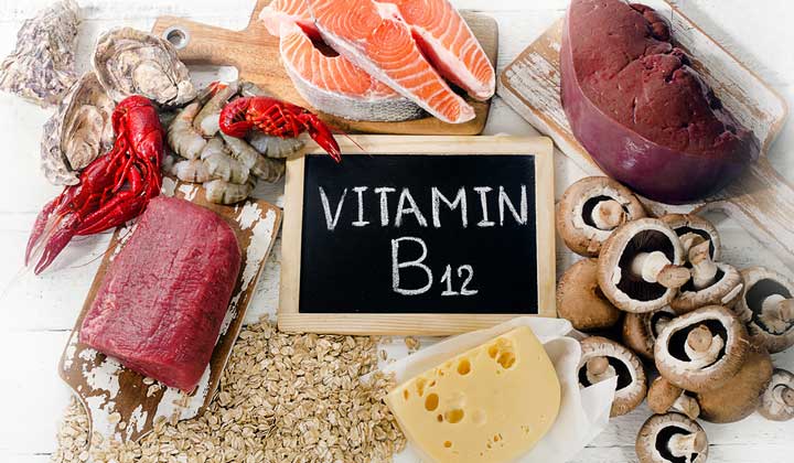 يحتوي هذا الفيتامين القابل للذوبان في الماء على العديد من الوظائف الأساسية في الجسم، فهو ضروري للحفاظ على صحة الأعصاب ودعم إنتاج الحمض النووي وخلايا الدم الحمراء، وكذلك الحفاظ على وظائف المخ الطبيعية، والنسبة اليومية الموصى بها منه حوالي 2.4 ميكروغرام ولكنه أعلى قليلاً بالنسبة للنساء الحوامل أو المرضعات.
