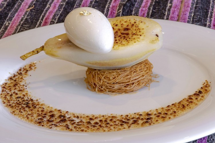 2. طريقة تحضير الكريم بروليه: يخلط صفار البيض مع السكر حتى يذوب وتوضع أوراق الجيلاتين في مياه مثلّجة.تغلى الكريما ويضاف خليط البيض ثم الجيلاتين.تملأ الإجاصة بالخليط حين تبرد وتوضع في الثلاجة حوالي 4 ساعات.