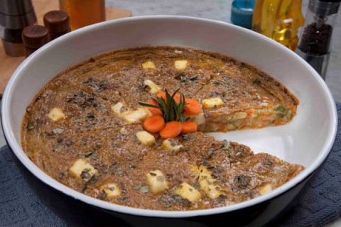- ضعي الطبق في الفرن لمدة ٣٠ دقيقة إلى أن تنضج العجة وتتحمص.