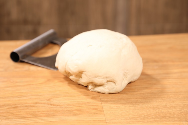4. انقلي العجينة للسطح المراد العمل عليه، وصبي عليها زيت الزيتون، واعجني من جديد مدة 5 دقائق إضافية.