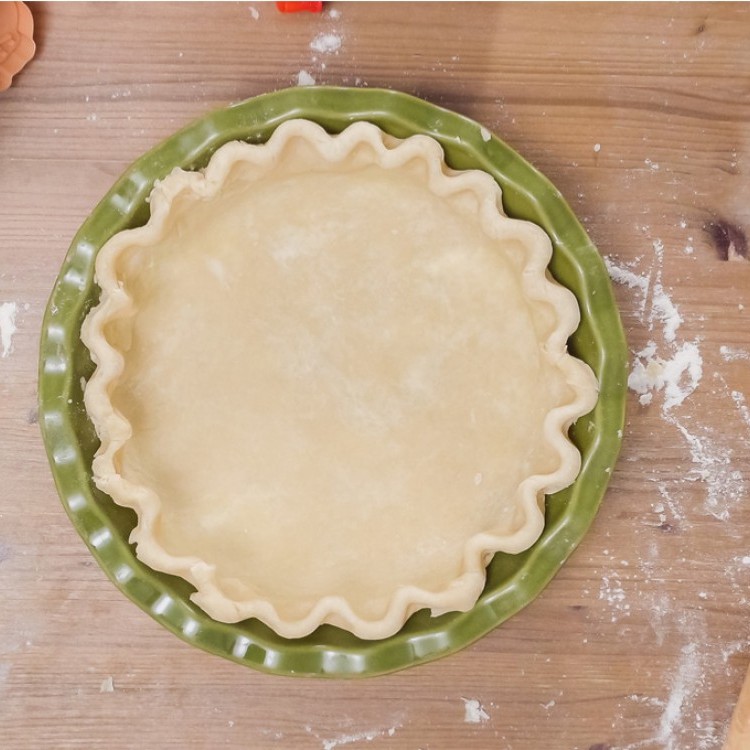 4. مدّي العجين في صينية التارت مقاس 9 انش واضغطيها بحيث تكون متساوية.