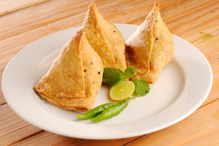 9. ادهني صينية الفرن بالقليل من الزيت وضعي حبات السمبوسة المحشية وأدخليها الفرن لمدة 10 دقائق حتى تصبح ذهبية اللون.
