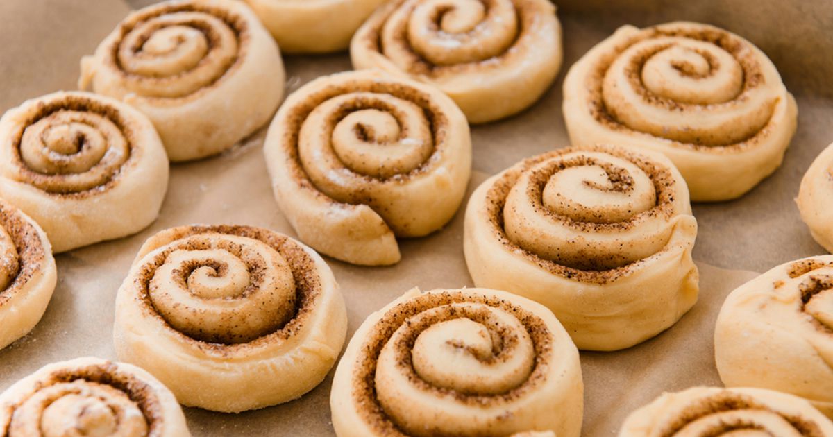 4- لفّي عجينة السينابون على شكل رول. قطّعيها إلى شرائح متساوية السماكة وضعيها في صينية فرن مبطنة بورق زبدة. غطّيها بفوطة قماش واتركيها ترتاح لـ30 دقيقة.