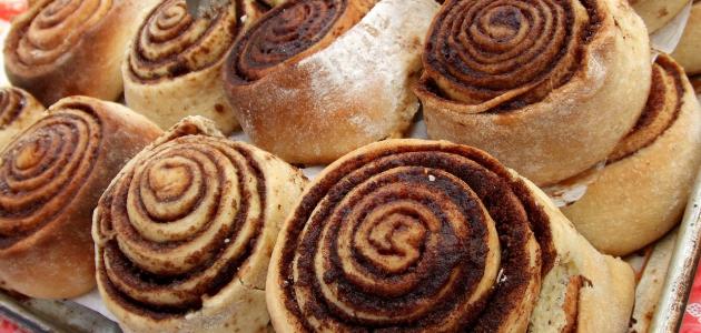 - نزيل الزبيب من الماءونصفيه جيداً، وننثره فوق السُكَّر، ونلف العجينة على شكل رول مع مراعاة إغلاق الأطراف بإحكام، وبعدها نُقطِّع الرول إلى قطع متساوية، ونضع كُل قطعة منها على الصينيّة الَّتي حضرناها مُسبقاً، ونُدخلها الفرن من خمس وعشرين دقيقة إلى نصف ساعة على حرارة 180 درجة حتّى تنضج ويُصبح لونها ذهبيّاً، وبعدها نُخرجها ونتركها لتبرد.