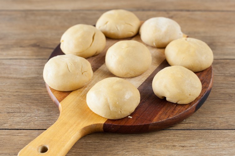 - نشكّل العجينة بشكل دائري باستخدام اليد، أو نفردها ونقطّعها باستخدام قالب دائري.