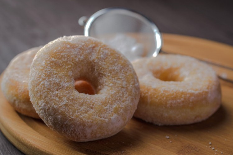 7. اخلطي سكر البودرة والقرفة في وعاء صغير ثم ازيلي الدونات من الزيت وغمّسيها بالخليط من كلّ الجهات.