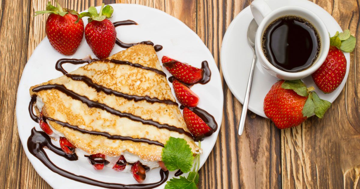 1- في وعاء، أخفقي البيض، الحليب والزيت حتى تتداخل المكونات. 2- أضيفي الدقيق والسكر وحركي حتى تتخلصي من التكتلات. 3- حمّي مقلاة غير لاصقة على نار متوسطة، اسكبي كمية قليلة من الخليط وافرديها على شكل دائرة. 4- أتركي العجينة على نار متوسطة حتى تنضج من الجهة الأولى ثم أقلبيها إلى الجهة الثانية حتى تتحمر. 5- قدمي الكريب مع صلصة الشوكولاتة والفراولة أو حضري كيكة الكريب خطوة خطوة.