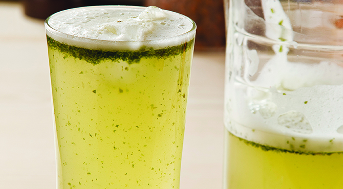 توضع جميع المكونات في الخلاط وتخلط جيدًا.