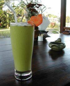 2. يخلط الحليب والأفوكادو وملعقة العسل معاً في خلاط العصير، ثم يسكب في أكواب التقديم ويزين الوجه بالعسل واللوز المطحون.