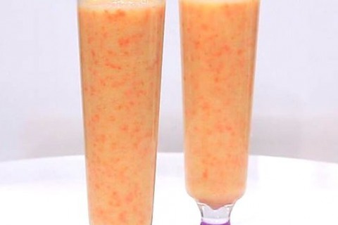 1. اخلطي التفاح و الجزر و الموز و عصير البرتقال و السكر و الزبادي في الخلاط ثم يصب في الاكواب و يقدم بألف هنا وشفا .