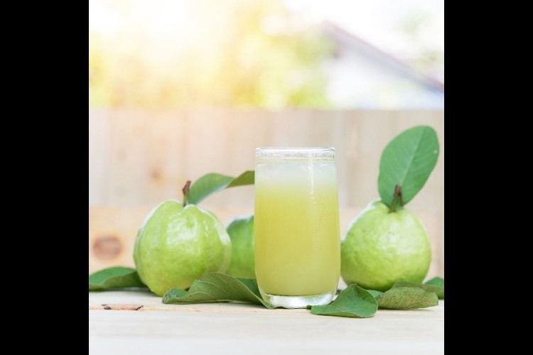 3. صبي عصير الجوافة الطبيعي بأكواب التقديم، وزيني بحبات الفراولة، وضعيه في الثلاجة ويقدم بارداً.
