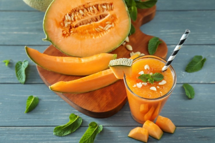 - اخلطي الشمام مع حليب اللوز والعسل في الخلاط الكهربائي حتى تتجانس المكونات.